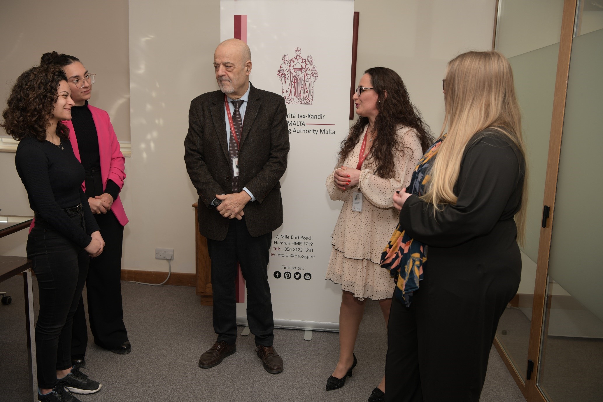 Waqt il-preżentazzjoni tal-ftehim li sar bejn l-Awtorità tax-Xandir [mix-xellug] Elaine Mallia minn Illum, Christine Mamo minn Media.Link Communications, iċ-Chairperson tal-Awtorità tax-Xandir Frank V. Farrugia, Dr Joanna Spiteri - Kap Eżekuttiv tal-Awtorità tax-Xandir u Kimberly Sacco Baldacchino minn ONE.